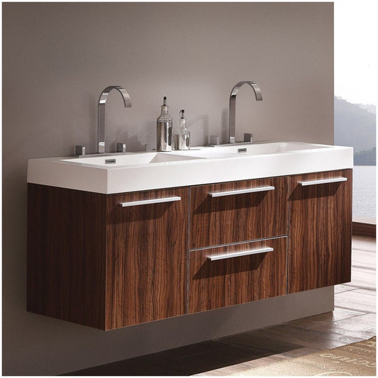 Fresca Opulento 54" Walnut Modern Double Sink Cabinet w/ Integrated Sinks