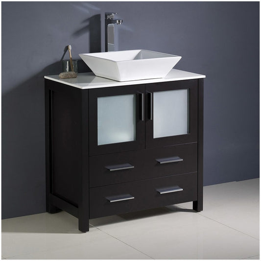 Fresca Torino 30" Espresso Modern Bathroom Cabinet w/ Top & Vessel Sink