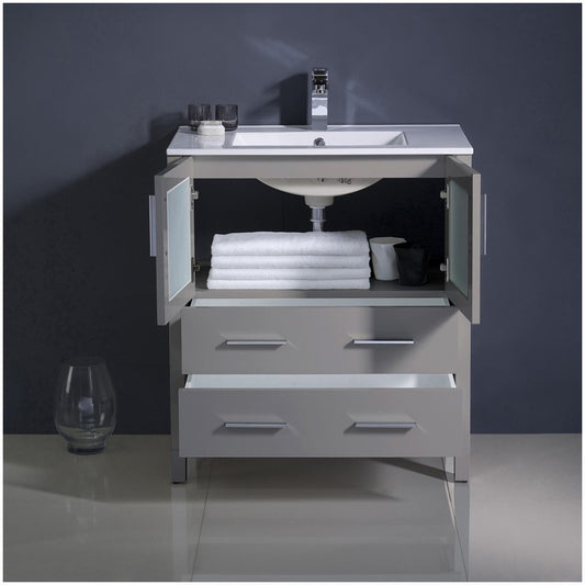 Fresca Torino 30" Gray Modern Bathroom Cabinet w/ Integrated Sink