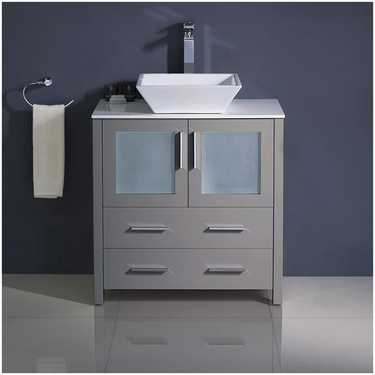 Fresca Torino 30" Gray Modern Bathroom Cabinet w/ Top & Vessel Sink