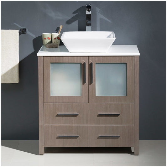 Fresca Torino 30" Gray Oak Modern Bathroom Cabinet w/ Top & Vessel Sink