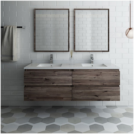 60 Wall Hung Double Sink Modern Bathroom Vanity w/ Mirrors, FVN31-3030ACA