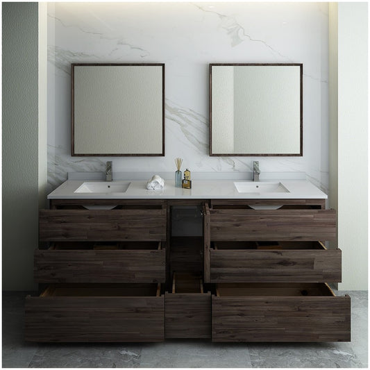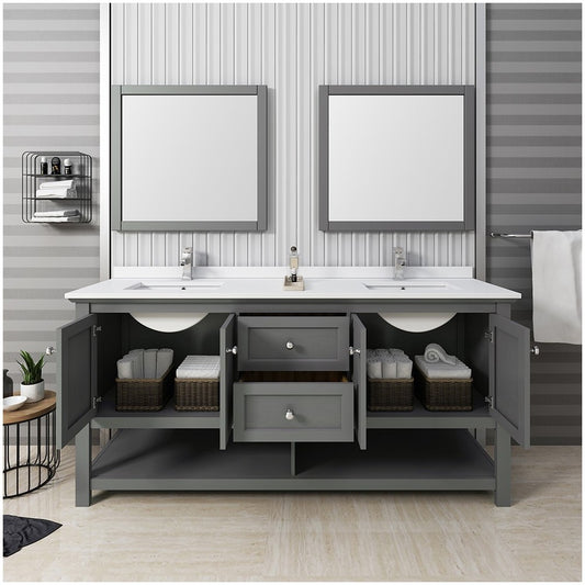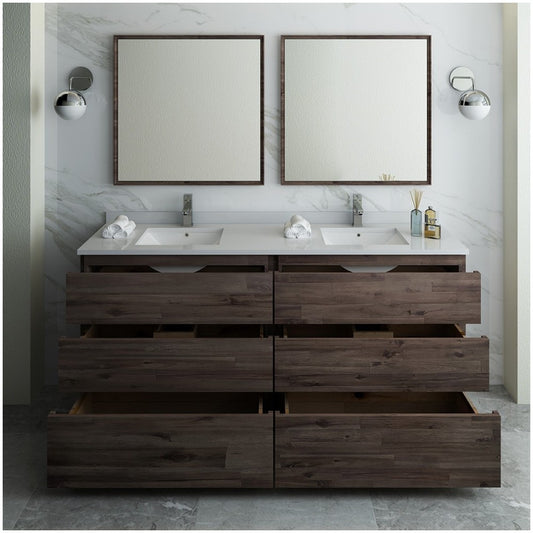 72 Floor Standing Double Sink Bathroom Vanity w/ Mirrors, FVN31-3636ACA-FC