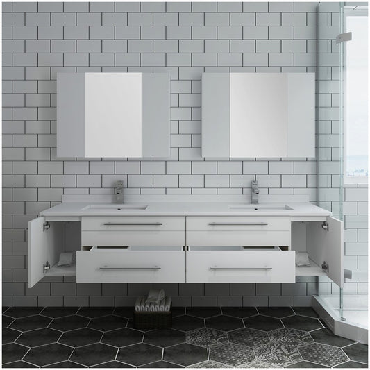 72 White Wall Hung Double Undermount Sink Bathroom Vanity w/ Medicine Cabinets