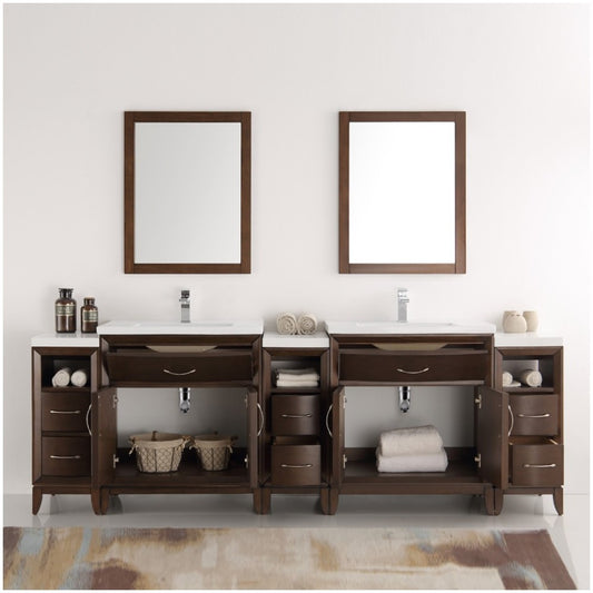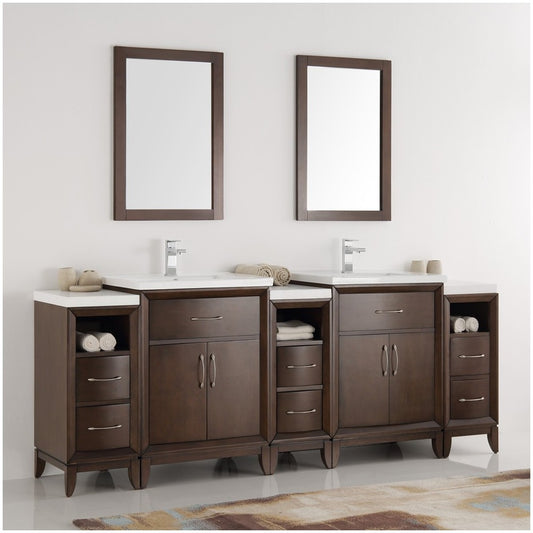 Cambridge 84" Antique Coffee Double Sink Traditional Bathroom Vanity w/ Mirrors