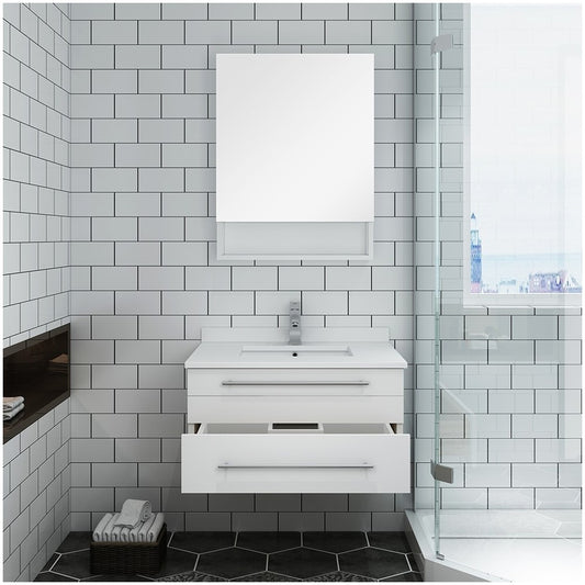 30 White Wall Hung Undermount Sink Modern Bathroom Vanity w/ Medicine Cabinet