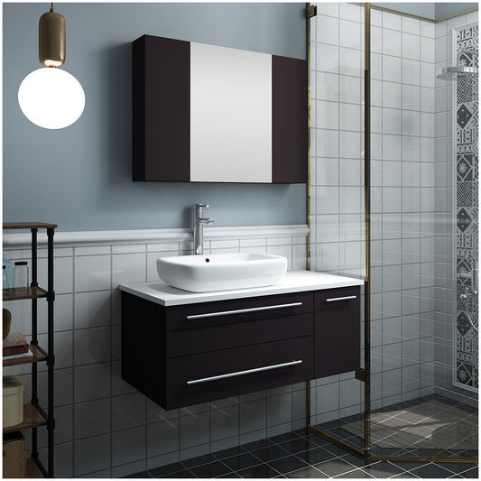 42 Espresso Wall Hung Vessel Sink Modern Bathroom Vanity w/ Medicine Cabinet