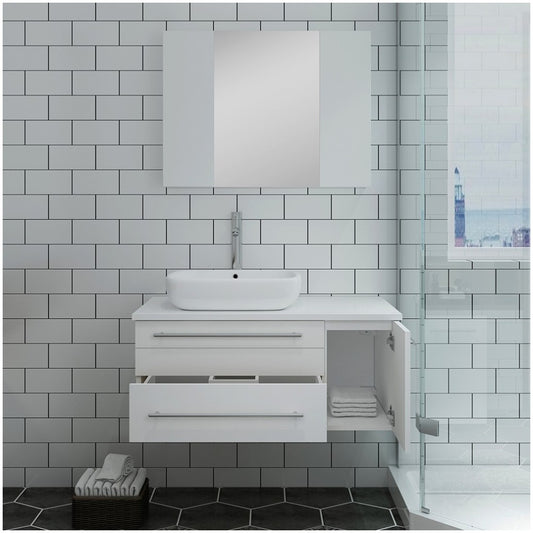 36 White Wall Hung Vessel Sink Bathroom Vanity w/ Medicine Cabinet - Left
