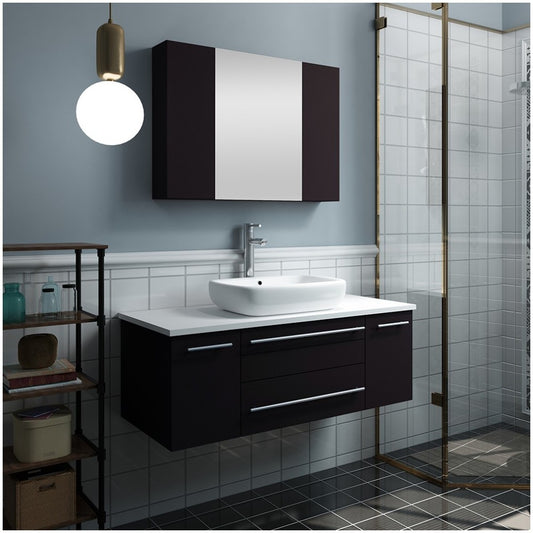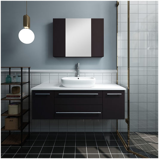 48 Espresso Wall Hung Vessel Sink Modern Bathroom Vanity w/ Medicine Cabinet