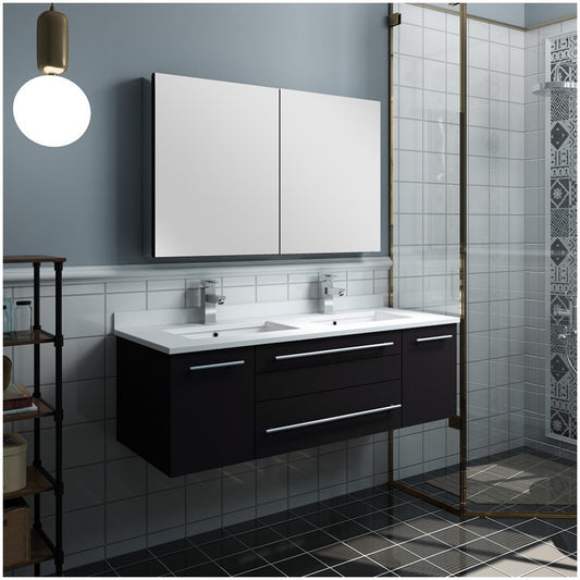48 Espresso Wall Hung Double Undermount Sink Bathroom Vanity w/ Medicine Cabinet