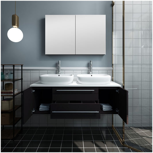 48 Espresso Wall Hung Double Vessel Sink Bathroom Vanity w/ Medicine Cabinet