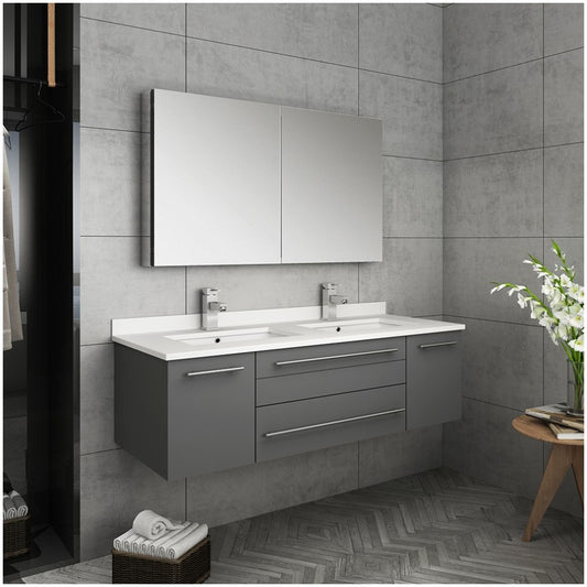 48 Gray Wall Hung Double Undermount Sink Bathroom Vanity w/ Medicine Cabinet