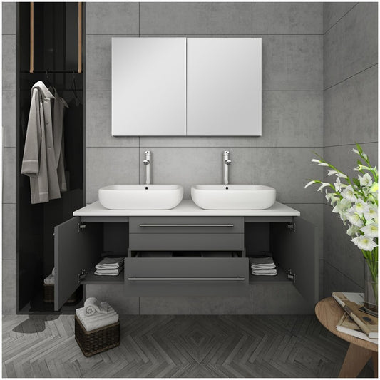 48 Gray Wall Hung Double Vessel Sink Modern Bathroom Vanity w/ Medicine Cabinet
