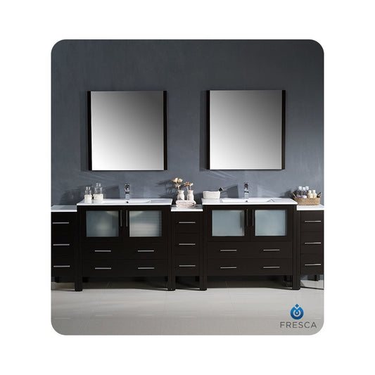 108 Espresso Double Sink Bathroom Vanity w/ 3 Side Cabinets & Integrated Sinks