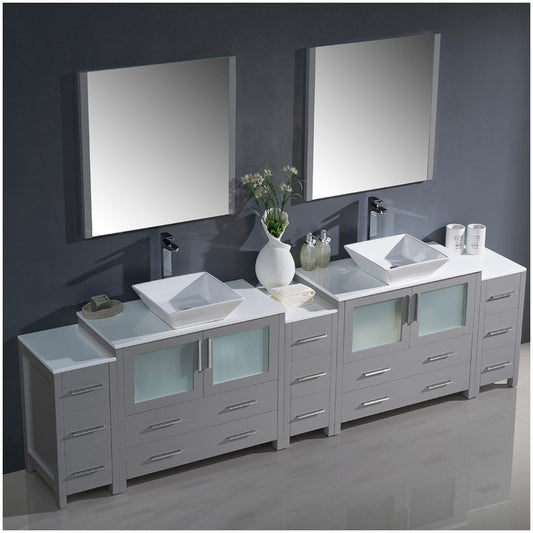 108 Gray Modern Double Sink Bathroom Vanity w/ 3 Side Cabinets & Vessel Sinks