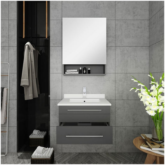 30 Gray Wall Hung Undermount Sink Modern Bathroom Vanity w/ Medicine Cabinet