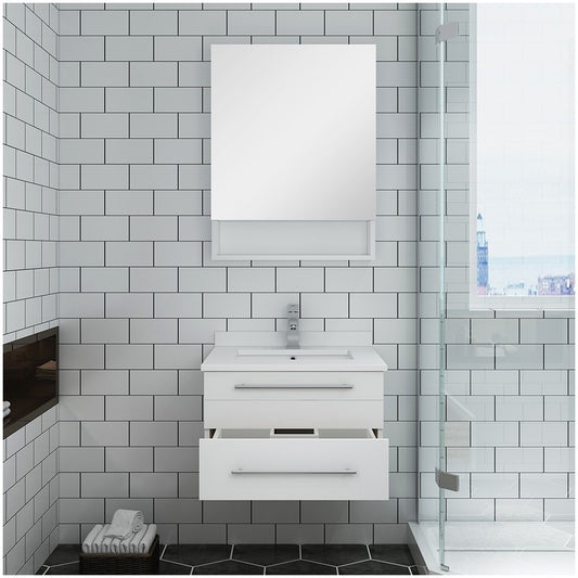 24 White Wall Hung Undermount Sink Modern Bathroom Vanity w/ Medicine Cabinet