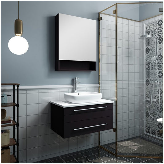 30 Espresso Wall Hung Vessel Sink Modern Bathroom Vanity w/ Medicine Cabinet