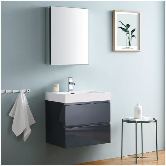 Valencia 24 Dark Slate Gray Wall Hung Modern Bathroom Vanity w/ Medicine Cabinet