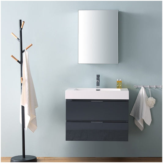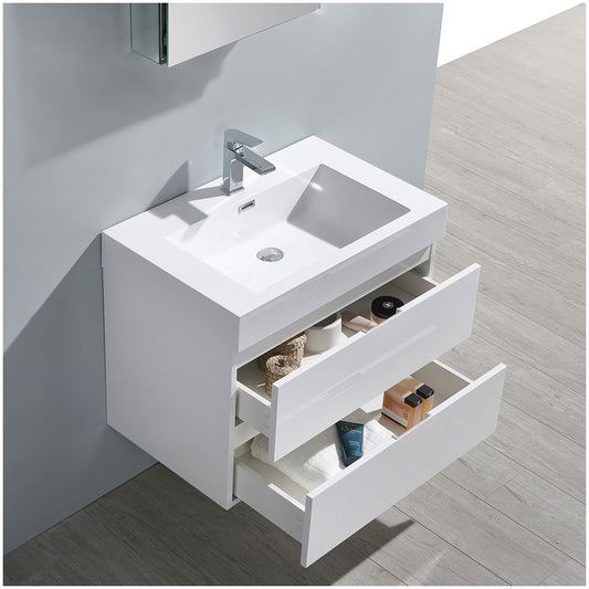 Valencia 30" Glossy White Wall Hung Modern Bathroom Vanity w/ Medicine Cabinet
