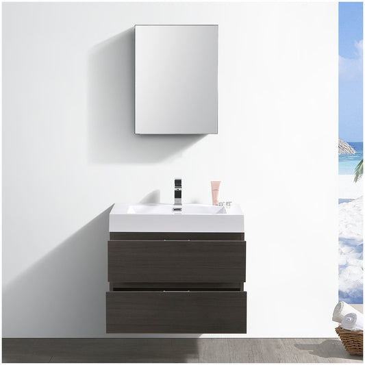 Valencia 30" Gray Oak Wall Hung Modern Bathroom Vanity w/ Medicine Cabinet