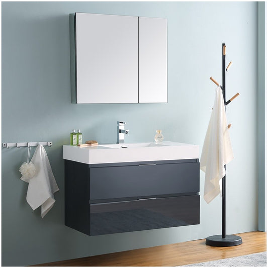 Valencia 36" Glossy White Wall Hung Modern Bathroom Vanity w/ Medicine Cabinet
