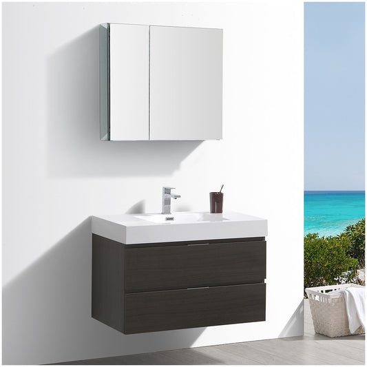 Valencia 36" Gray Oak Wall Hung Modern Bathroom Vanity w/ Medicine Cabinet