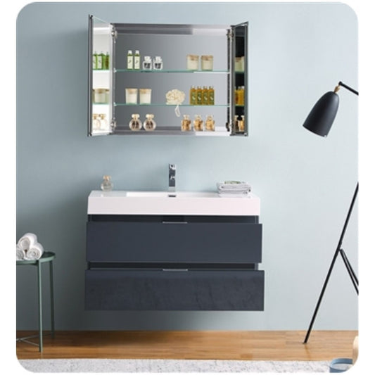 Valencia 36 Dark Slate Gray Wall Hung Modern Bathroom Vanity w/ Medicine Cabinet