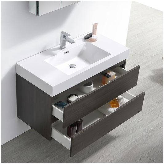 Valencia 40" Gray Oak Wall Hung Modern Bathroom Vanity w/ Medicine Cabinet