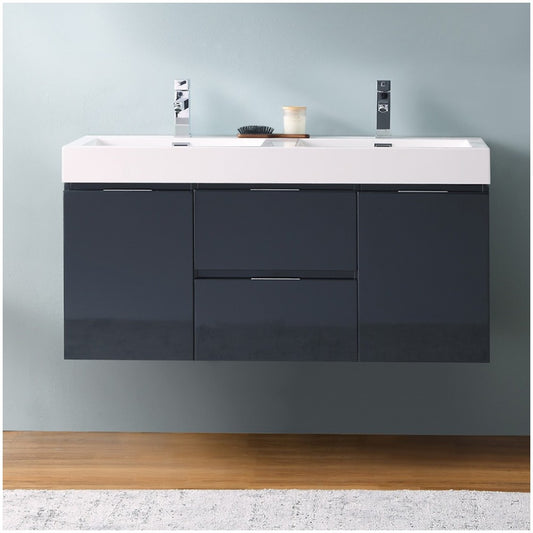 Valencia 48" Dark Slate Gray Wall Hung Double Sink Modern Bathroom Vanity