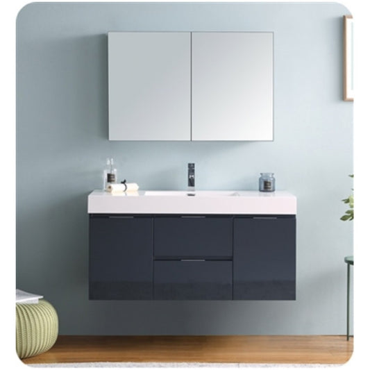 Valencia 48" Glossy White Wall Hung Modern Bathroom Vanity w/ Medicine Cabinet