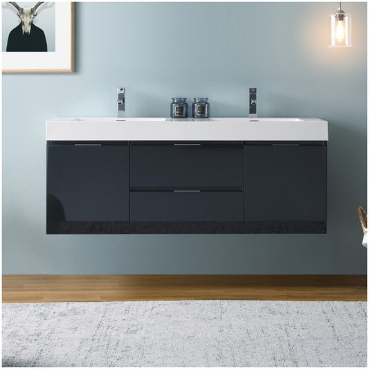 Valencia 60" Dark Slate Gray Wall Hung Double Sink Modern Bathroom Vanity