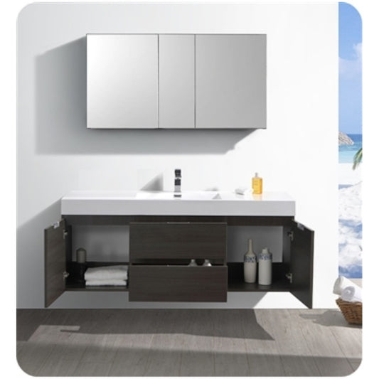 Valencia 60" Gray Oak Wall Hung Modern Bathroom Vanity w/ Medicine Cabinet