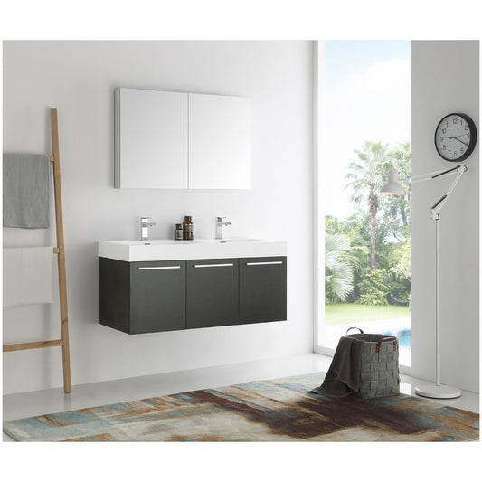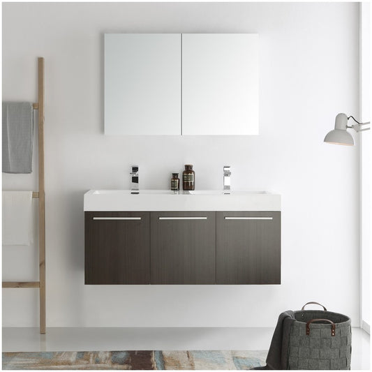 Vista 48 Gray Wall Hung Double Sink Modern Bathroom Vanity w/ Medicine Cabinet