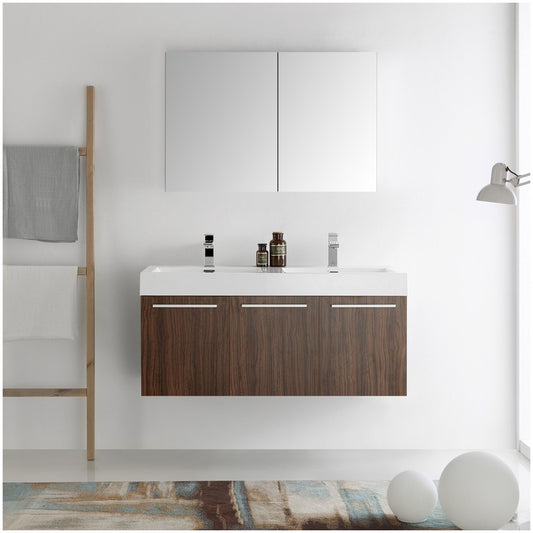Vista 48 Walnut Wall Hung Double Sink Modern Bathroom Vanity w/ Medicine Cabinet