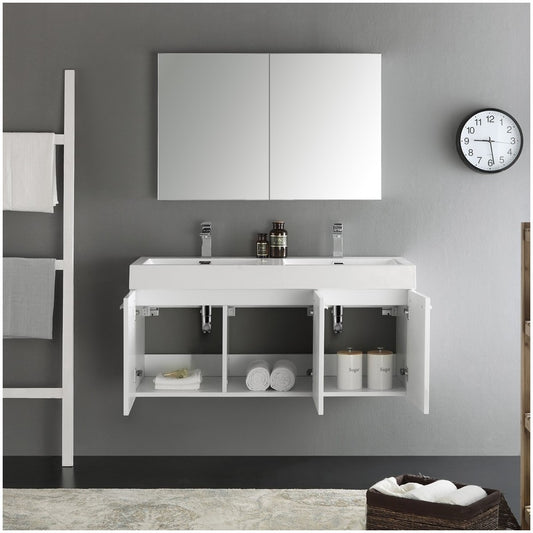 Valencia 60" Glossy White Wall Hung Modern Bathroom Vanity w/ Medicine Cabinet