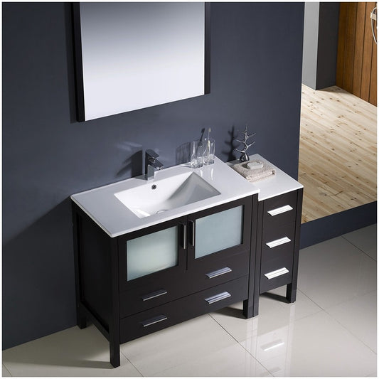 Torino 48" Espresso Modern Bathroom Vanity w/ Side Cabinet & Integrated Sink