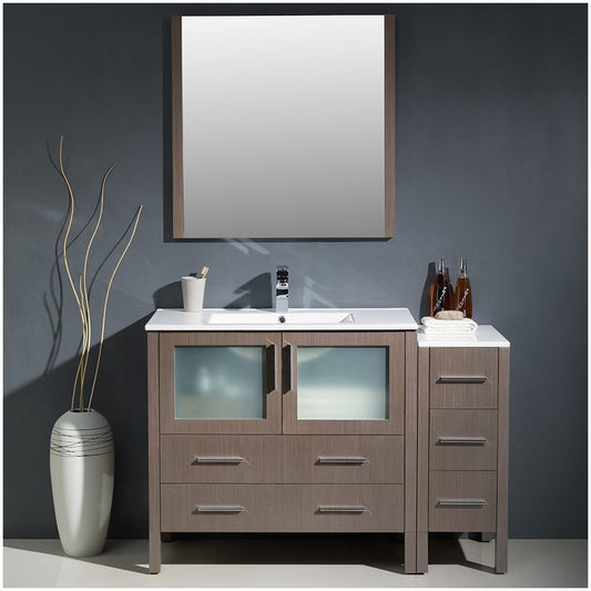 Torino 48" Gray Oak Modern Bathroom Vanity w/ Side Cabinet & Integrated Sink