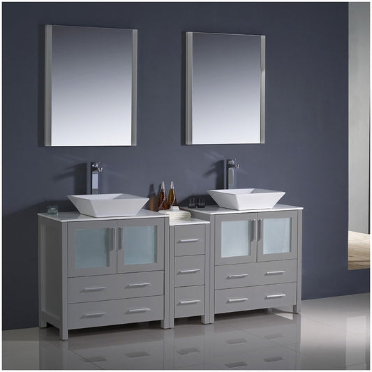 Torino 72 Gray Modern Double Sink Bathroom Vanity w/ Side Cabinet & Vessel Sinks