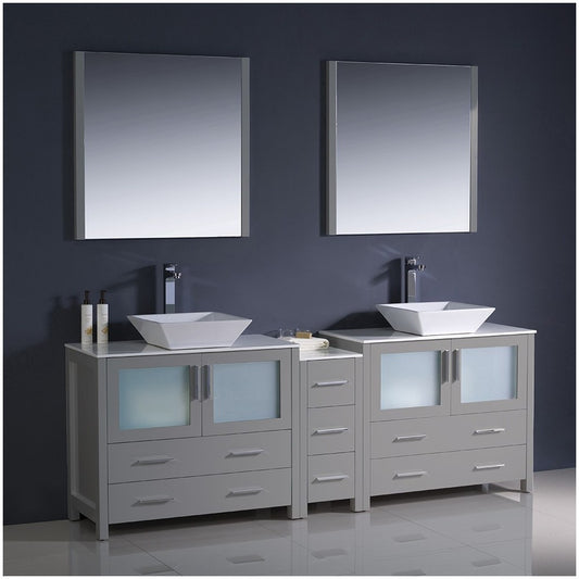Torino 84 Gray Modern Double Sink Bathroom Vanity w/ Side Cabinet & Vessel Sinks