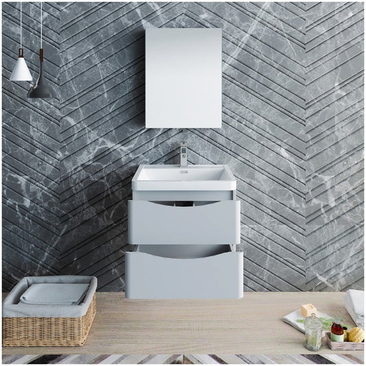 Tuscany 24" Glossy Gray Wall Hung Modern Bathroom Vanity w/ Medicine Cabinet