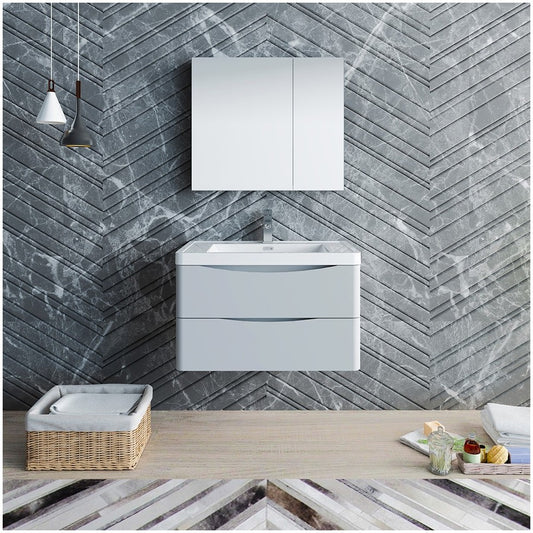 Tuscany 36" Glossy White Wall Hung Modern Bathroom Vanity w/ Medicine Cabinet