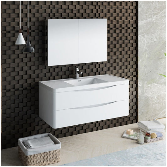 Tuscany 48" Glossy White Wall Hung Modern Bathroom Vanity w/ Medicine Cabinet