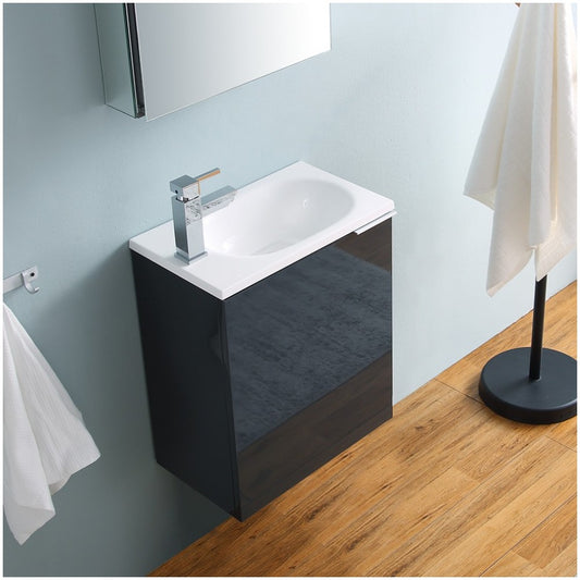Valencia 20 Dark Slate Gray Wall Hung Modern Bathroom Vanity w/ Medicine Cabinet