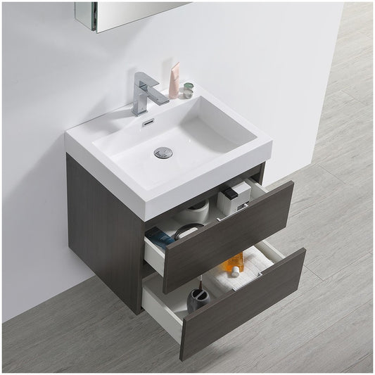 Valencia 24" Gray Oak Wall Hung Modern Bathroom Vanity w/ Medicine Cabinet