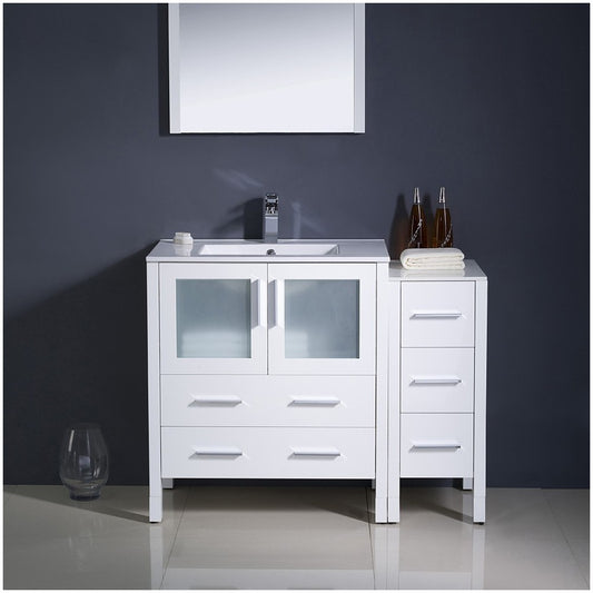 Fresca Torino 42" White Modern Bathroom Vanity w/ Side Cabinet & Integrated Sink
