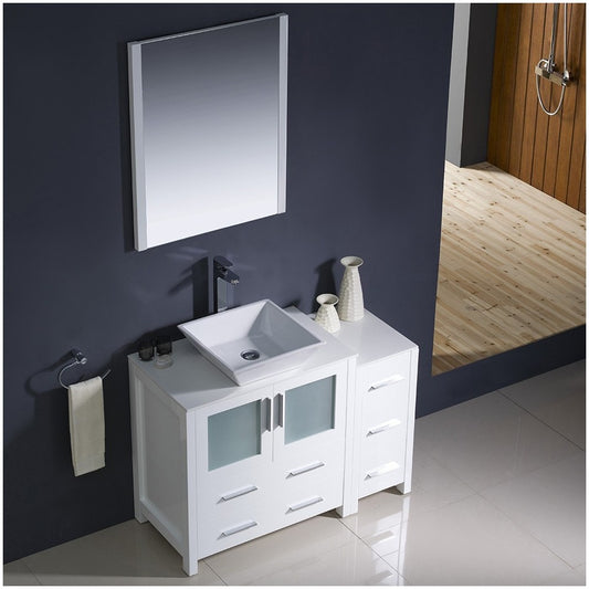 Fresca Torino 48" White Modern Bathroom Vanity w/ Side Cabinet & Vessel Sink