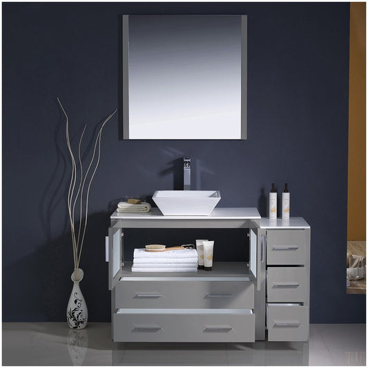 Fresca Torino 48" Gray Modern Bathroom Vanity w/ Side Cabinet & Vessel Sink