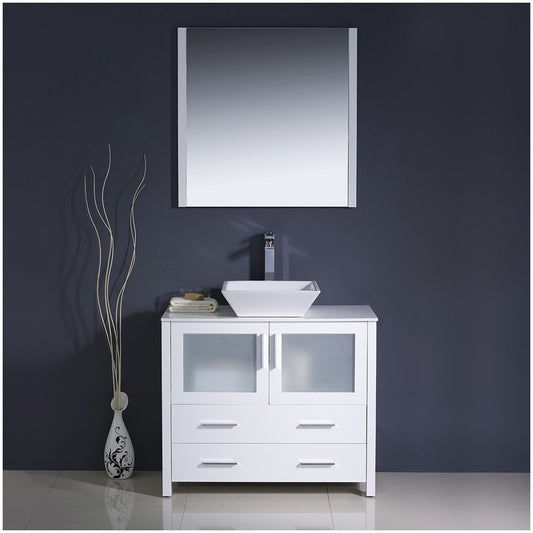Fresca Torino 42" White Modern Bathroom Vanity w/ Side Cabinet & Vessel Sink