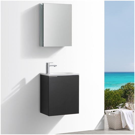 Fresca Valencia 20" Black Wall Hung Modern Bathroom Vanity w/ Medicine Cabinet